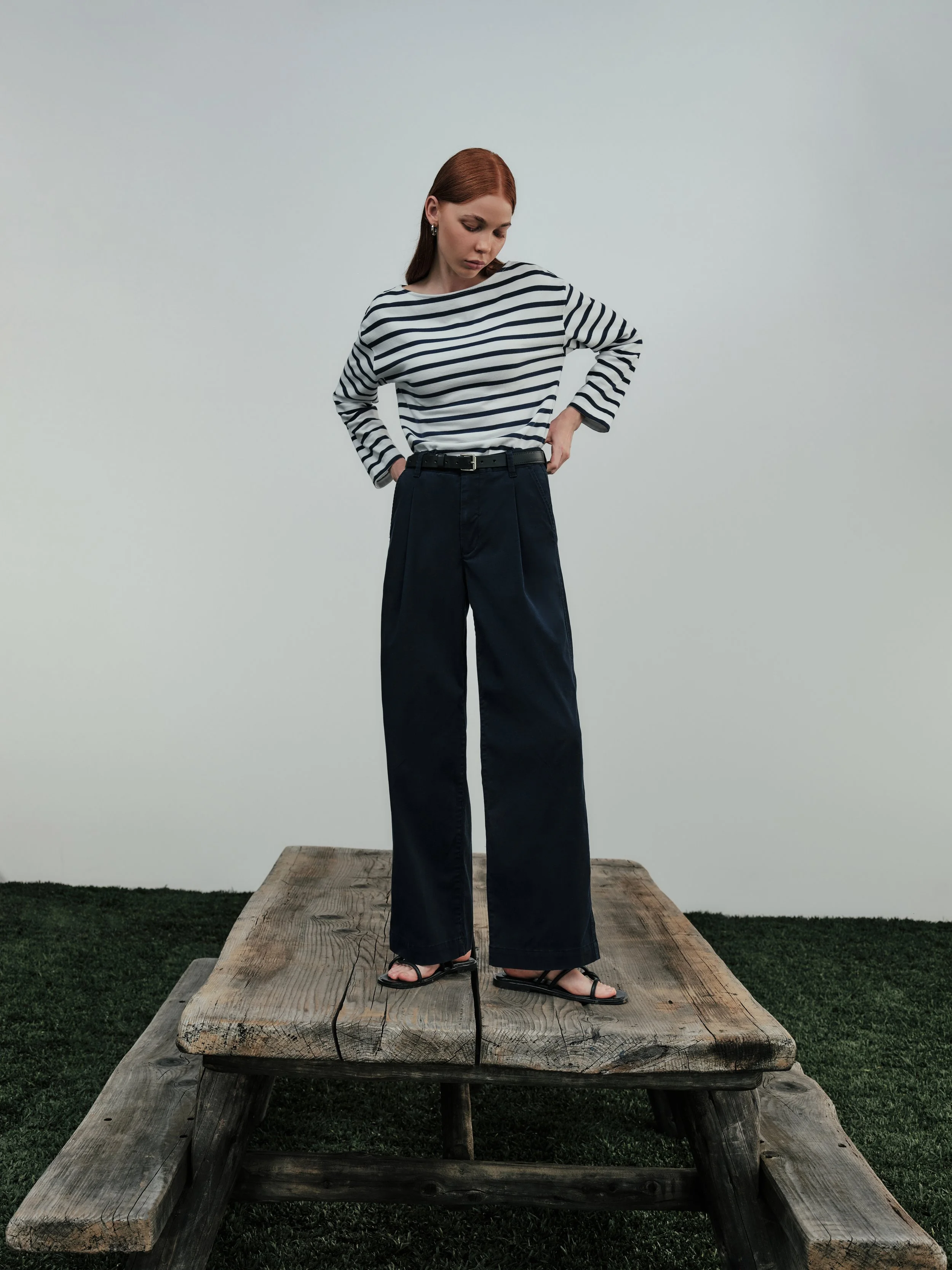 A rhythmic soundtrack of surf meeting shore draws us into spring. With winter’s thaw, we seek renewal and find it along an endless stretch of coastline, where sun-warmed sand and briny ocean air bring life into balance. The new Spring 2024 collection favors versatility and ease. Sophistication comes in the form of relaxed simplicity. Authenticity always wins out over novelty. This season’s informal take on the contemporary uniform manifests in timeless pieces destined to become part of a greater story. With a color palette inspired by the hues of Spring’s misty shores and the depth of the oceans sundry blues and greens, this assortment invites us into an effortless way of living and dressing.